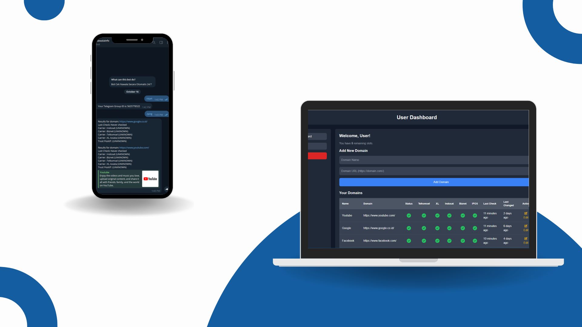 Cek domain situs anda bisa diakses oleh customer atau member secara real-time 24/7.